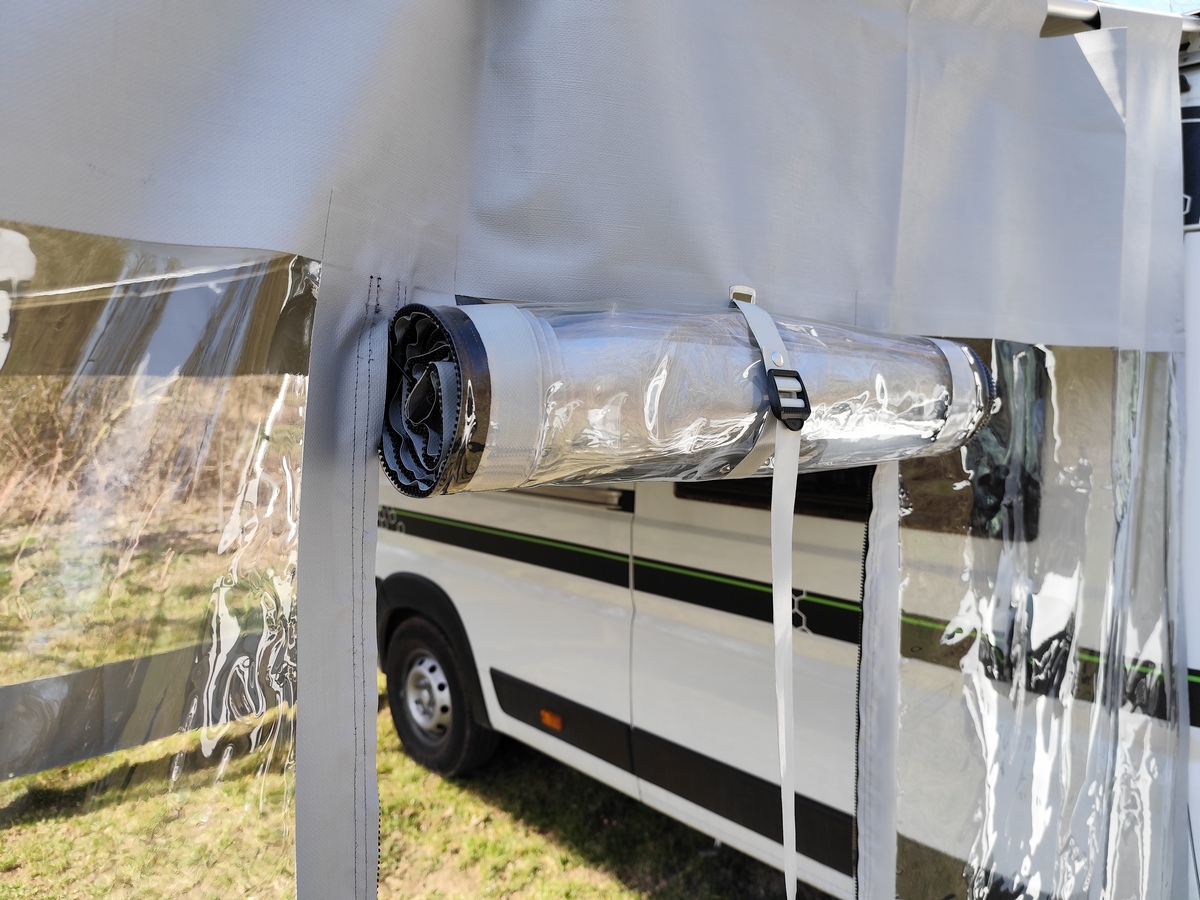 Clona je v horní části opatřena tunelem pro zastrčení rozpěrné tyčeZástěna se na bocích fixuje k týčím pomocí gumy s kuličkou.V dolní části je opatřena oky pro uchycení pomocí stanových kolíků